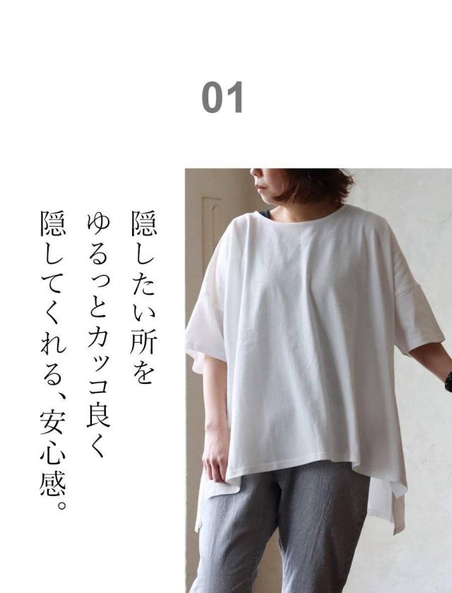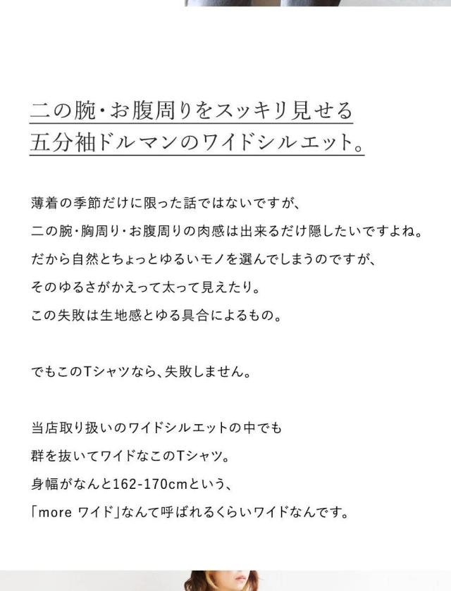 ・二の腕・お腹周りをスッキリ見せる五分袖ドルマンのワイドシルエット。