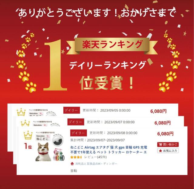 またAirTagから警告音(約6秒間)を鳴らすことも出来ますので、愛猫を見つけるのはとても簡単です。