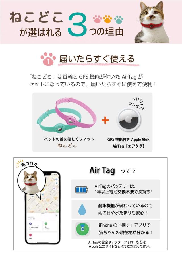 ねこどこ ライト Airtag エアタグ 猫 犬 gps 首輪 GPS 充電不要で1年使える ペット トラッカー ロケーター エアータグ ガーミンt5からの切り替えに