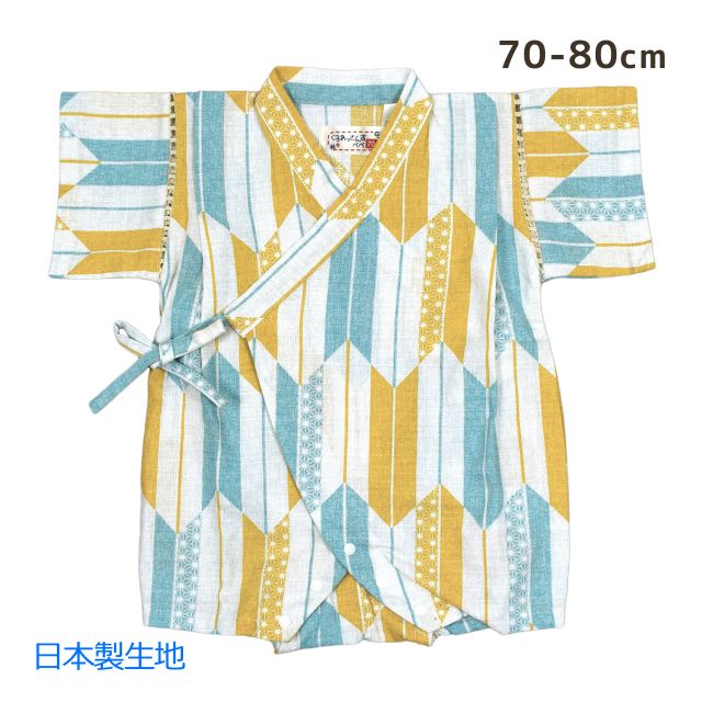 ベビー 甚平 ロンパース 男の子 子供 日本製生地 矢絣 和柄 綿100%マスタード