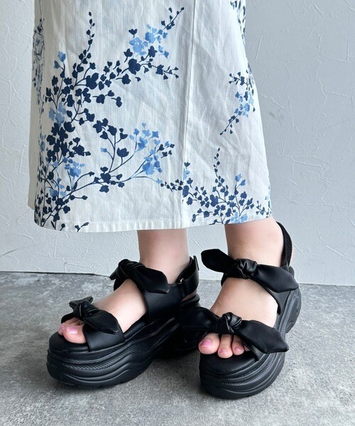 【mily bilet】大人ガーリーに足元彩る。リボンデザイン厚底サンダル