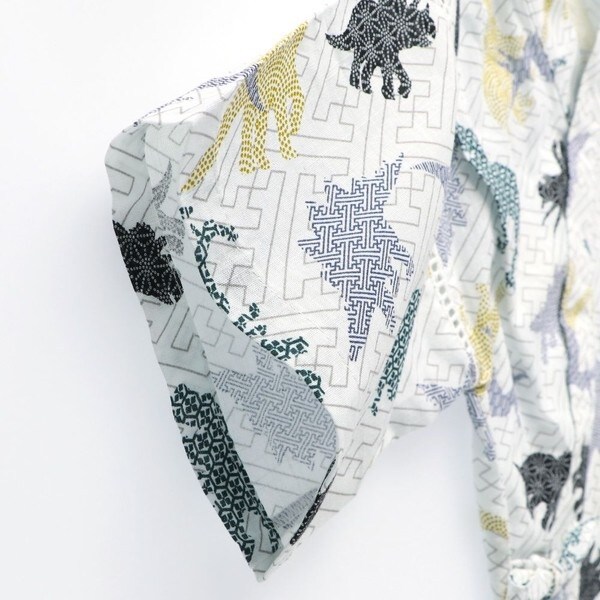 恐竜柄とモダンな小紋柄を絶妙に組み合わせたデザインです。