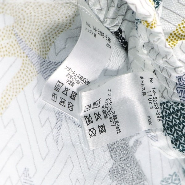 100cm:【上衣】着丈44 胸回り72 背肩幅30 袖丈15 袖口幅16 【下衣】パンツ総丈33 ウエストゴム付21 前股上25.5 裾口19