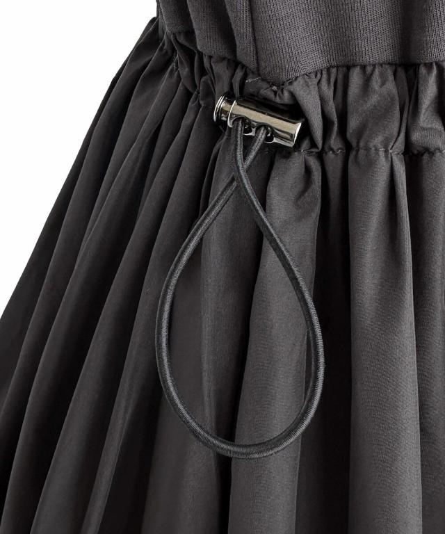 カットソー素材&ハリのあるタフタ素材のドッキングワンピース