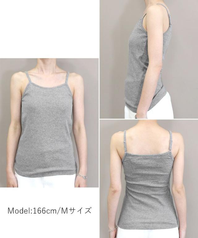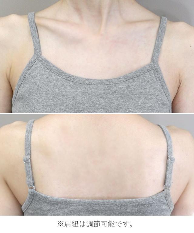 肩紐のアジャスターで長さ調整が可能なカップ付きキャミソール。