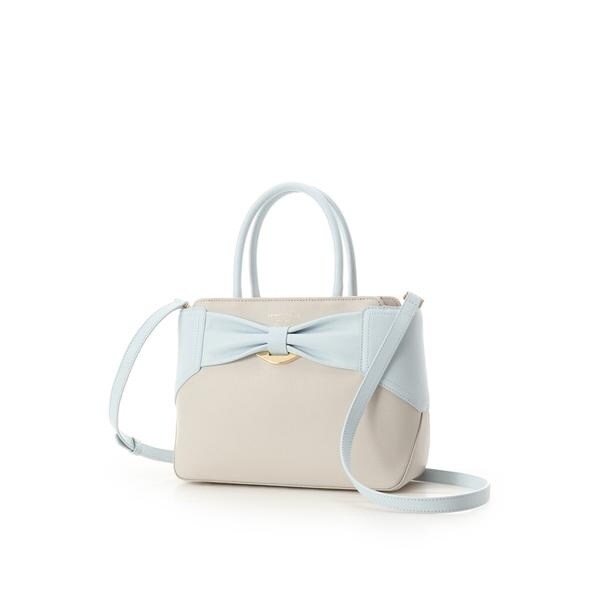 バイカラーリボンモチーフ スプリットレザーハンドバッグ