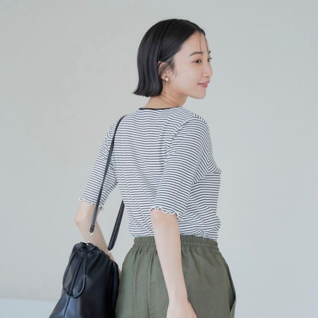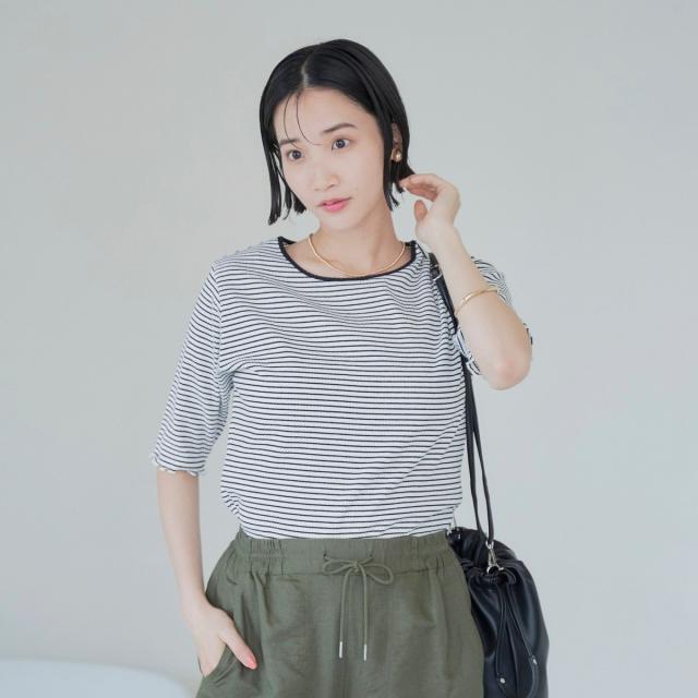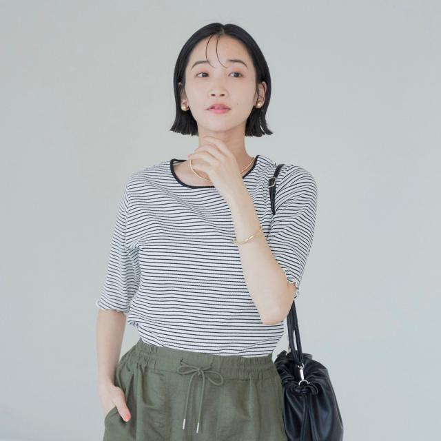 さらっとした肌触りのカットソー素材で着心地も良く、春先はジャケットやカーディガンのインナーに、夏は1枚着やキャミブラウスとのレイヤードにも活躍。