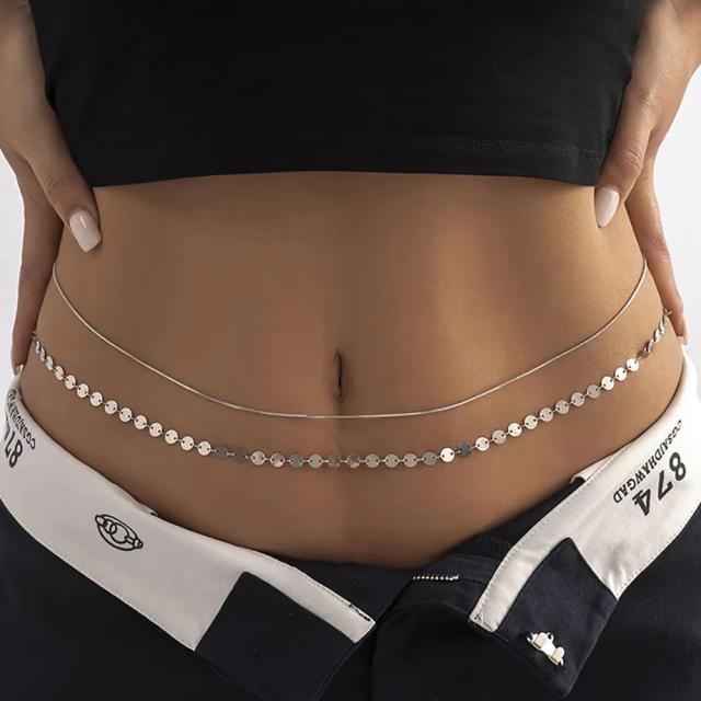 ラウンド&スネイクウエストチェーン (シルバー) 1個販売 銀色 2連 2本 丸型 ラウンドチェーン スネークチェーン ボディチェーン クサリ 鎖 ベリーダンス レディース チェーンベルト ベリーチェーン ボディージュエリー 腰 巻く ネックレスチェーン ダンス ダンサー