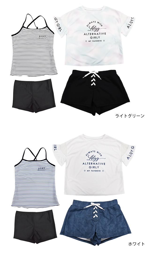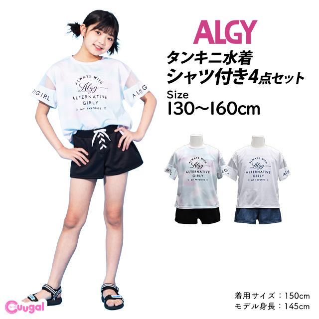 水着 女の子 キッズ ジュニア セパレート水着 ALGY アルジー 子供 Tシャツ付き タンキニ キュロット 4点セット 130cm 140cm 150cm 160cm