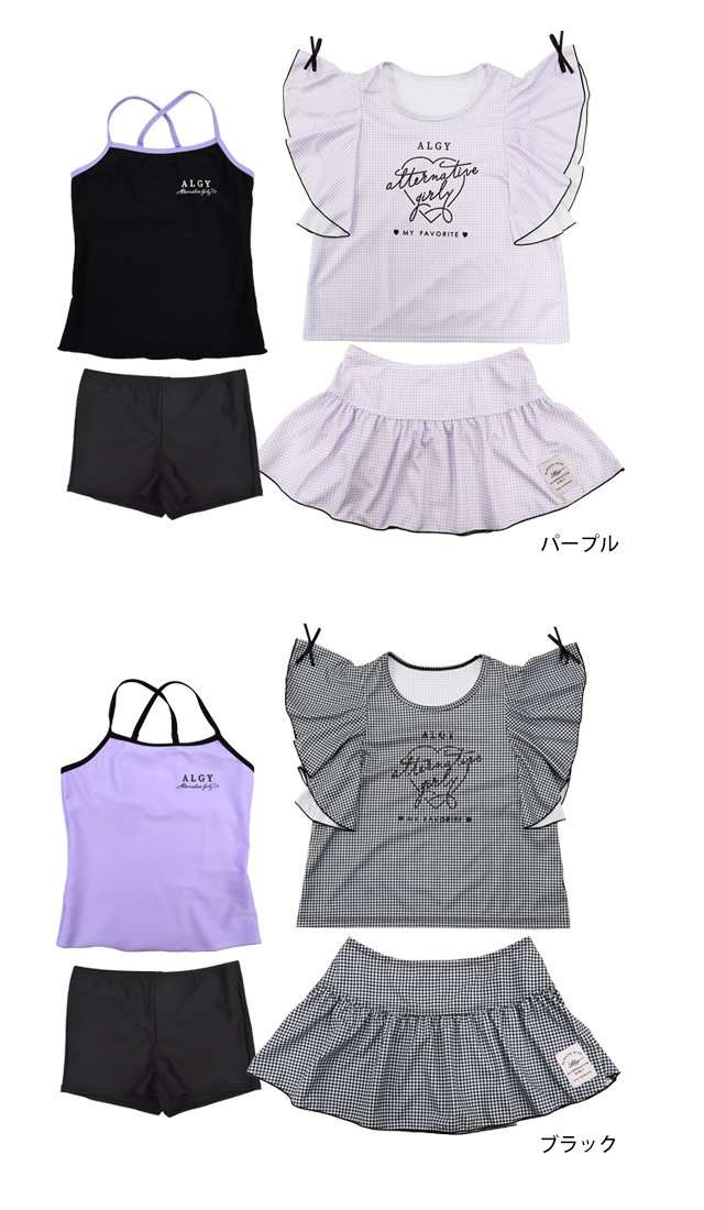 水着 女の子 キッズ ジュニア セパレート水着 ALGY アルジー 子供 Tシャツ付き タンキニ スカート 4点セット 130cm 140cm 150cm 160cm