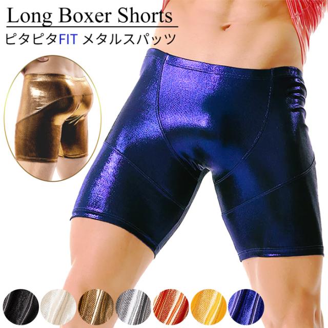 ボクサー パンツ ロング スパッツ メタリック メンズ 男性下着 キラキラ セクシー マッチョ 快適フィット タイト ジム スポーツ 大きいサイズ 黒 金 銀 ms-007