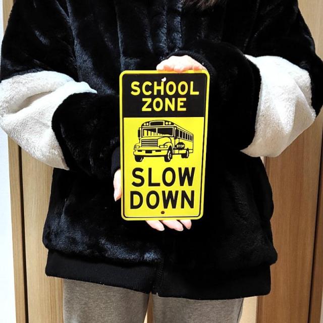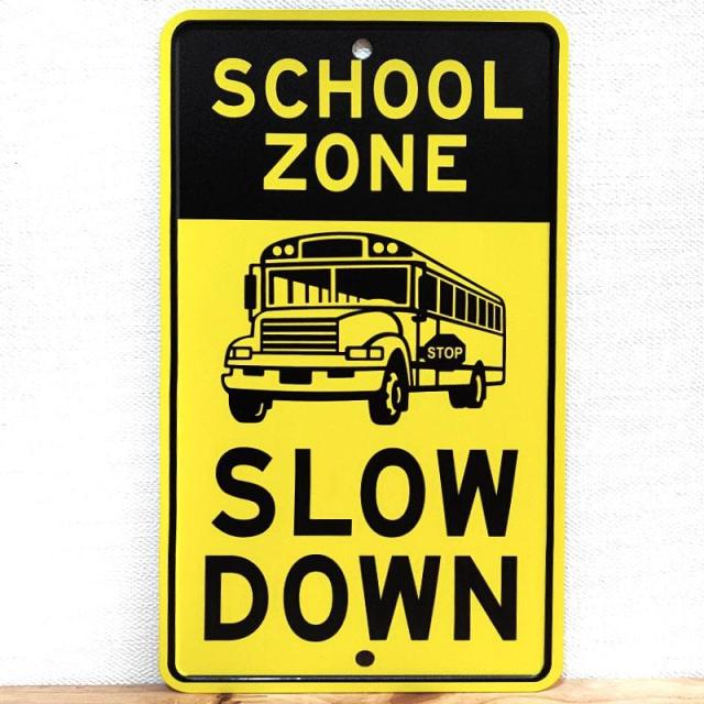 ブリキ看板 通学路 メッセージプレート スクールゾーン バス 車 アメリカン メッセージサイン SCHOOL ZONE アルミニウム シンプル 雑貨 おしゃれ 壁飾り インテリア
