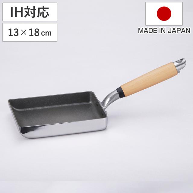 卵焼き器 13×18cm IH対応 極 ふかみ 日本製 ( ガス火対応 エッグパン アルミ製 ふっ素樹脂加工 軽い 玉子焼きフライパン 卵焼きフライパン フッ素コーティング 木製ハンドル 卵焼きパン 玉子焼きパン 家庭用 軽量 キッチンツール )