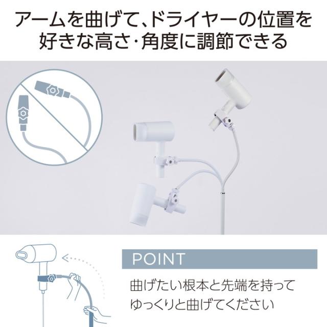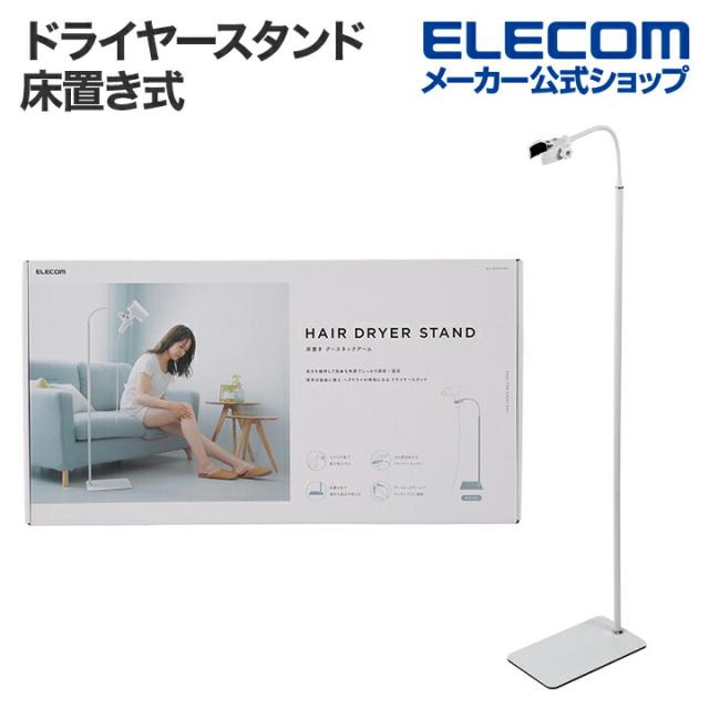 エレコム ドライヤースタンド 床置き式 グースネックアーム 360度回転ホルダー ドライヤー スタンド ホワイト ┃BA-HDSTFLWH