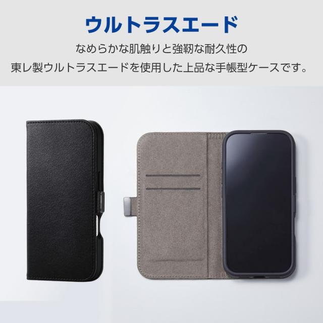 エレコム iPhone 16e 用 ソフトレザーケース 磁石付 ウルトラスウェード iPhone16 e ソフトレザー ケース カバー ウルトラ スウェード ブラック ┃PM-A25SPLFUSBK