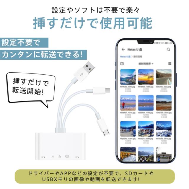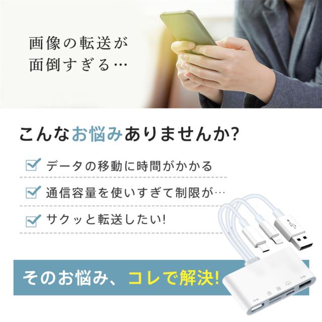 sdカードリーダー iphone 設定不要 アプリ不要 双方向転送 USB マルチカードリーダー iPhone iPad Android Type-C lightning タブレット スマホ sdカード マイクロsd microsd SD TFカード カメラ カードリーダー ソフト不要 ビデオ ファイル移動 オフィス コンパクト 軽量 読み込み 書き込み 高速データ転送 パソコン 小型 テレワーク 在宅勤務 大容量 持ち運び