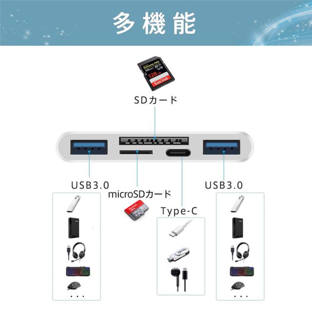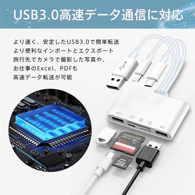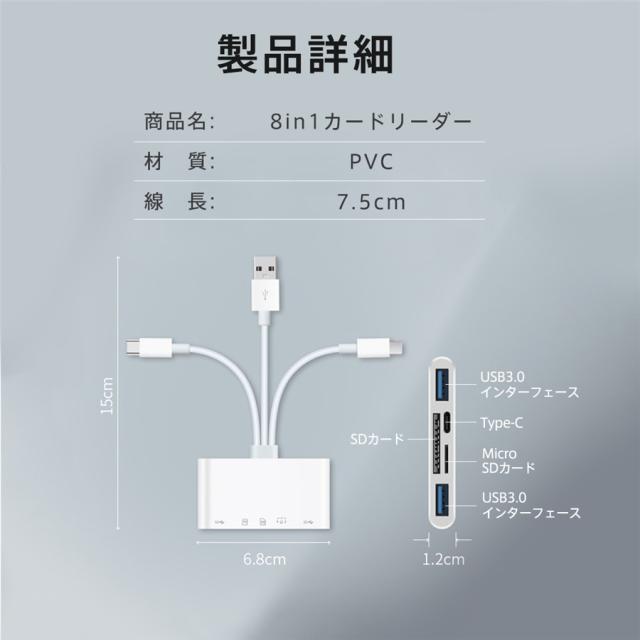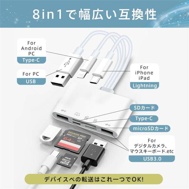 8in1 SDカードリーダー iPhone type-c データ転送 usb3.0 usbメモリ 双方向転送 写真 バックアップ
