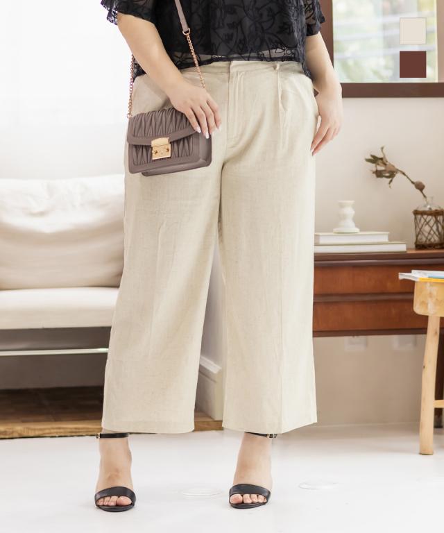 大きいサイズ/レディース/3L/4L/麻調ワイドパンツ