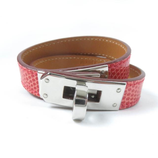 極美品☆HERMES エルメス ケリーブレスレット ドゥブルトゥール シルバー金具 リザード レッド XS T刻印 箱付き フランス製 レディース