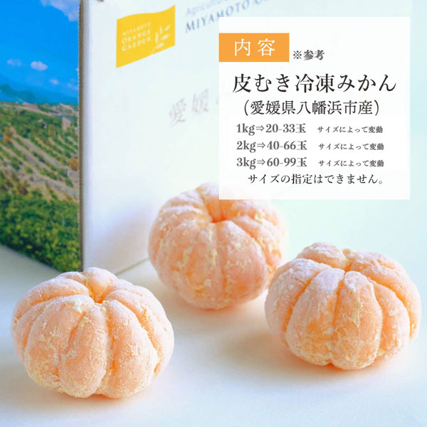 | 商品名 | 冷凍みかん 愛媛みかん むき・皮なし(西宇和みかん) 1kg 小玉20〜33個前後 西宇和ミカン使用(八幡浜みかん)|高級蜜柑使用の冷凍ミカン|愛媛県産 高級みかん 果物 フルーツアイス 有名農園 暑い夏にぴったり 果物アイス感覚 |