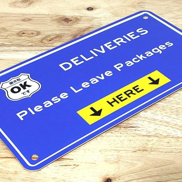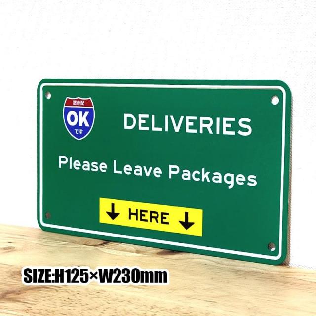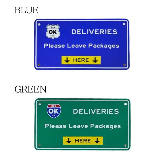 ブリキ看板 メッセージサイン 玄関 宅配便 置き配OK プレート 選べる ブルー グリーン DELIVERIES かわいい メッセージプレート アルミニウム おしゃれ アメリカン 壁飾り