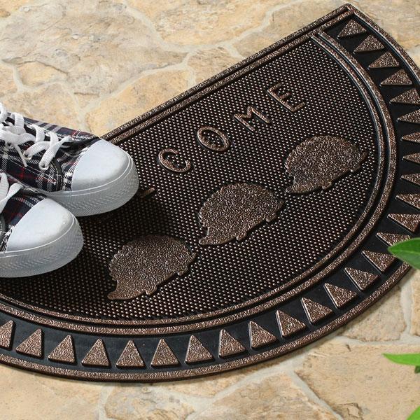 玄関マット おしゃれ ウェルカムマット ドアマット 北欧 ラバーマット セミサークル 60x33 ハリネズミ 外 泥落とし 北欧 洗える 滑り止め