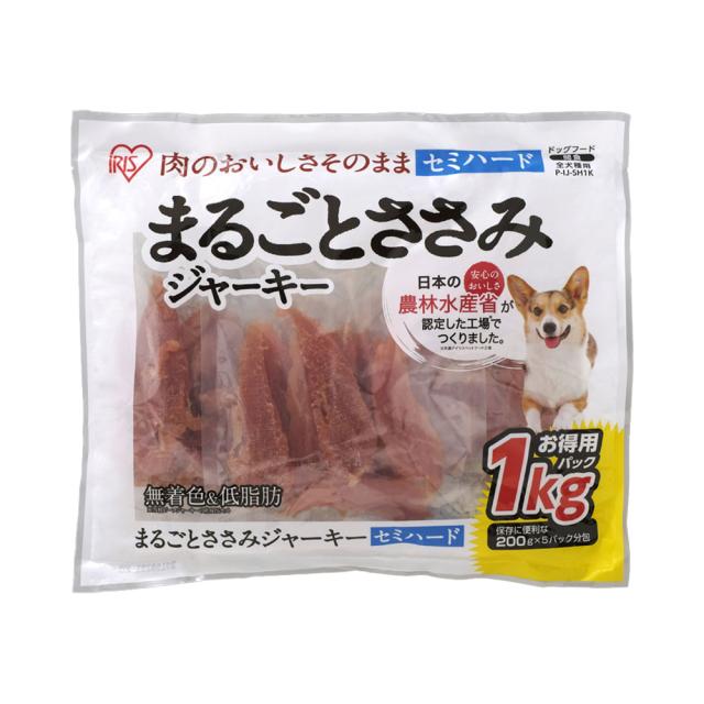 まるごとささみジャーキー セミハード お徳用パック P-IJ-SH1K 1袋(1kg) アイリスオーヤマ 無着色 低脂肪 犬 ドッグフード おやつ