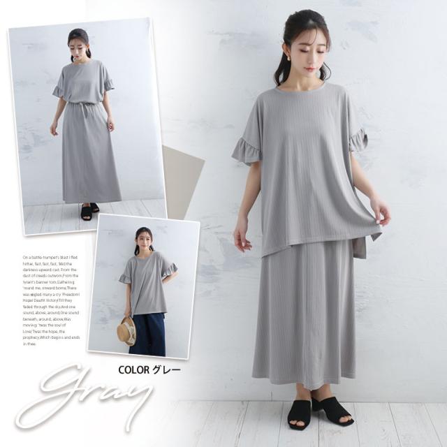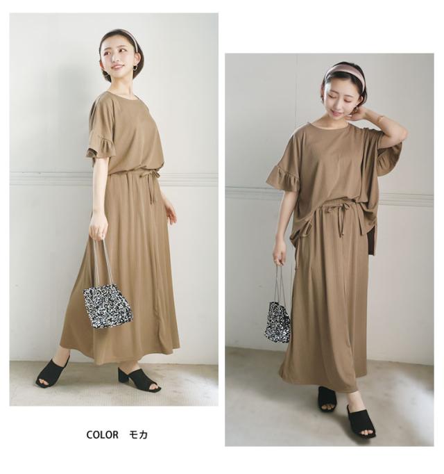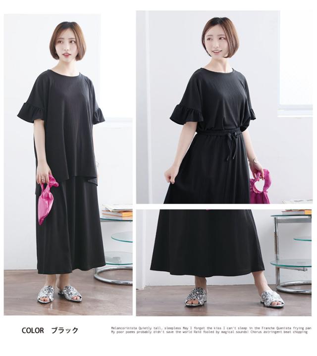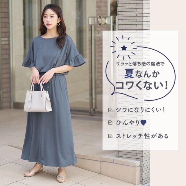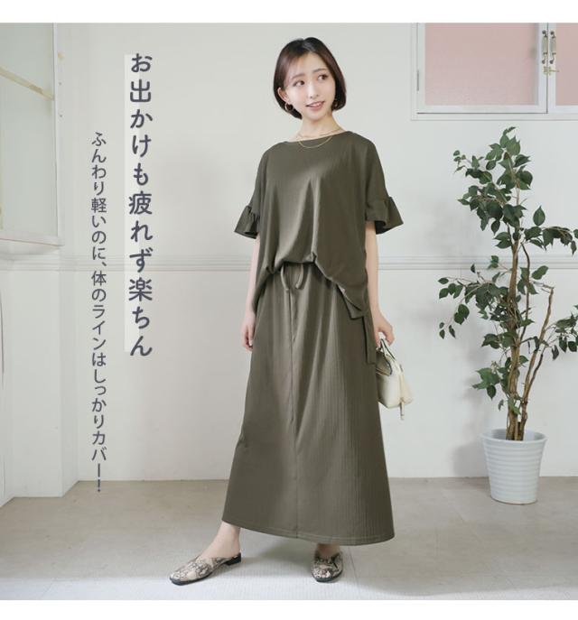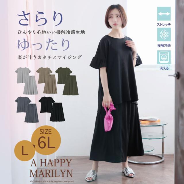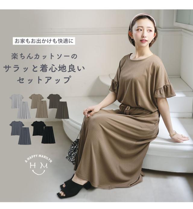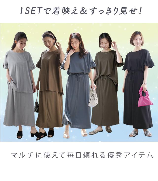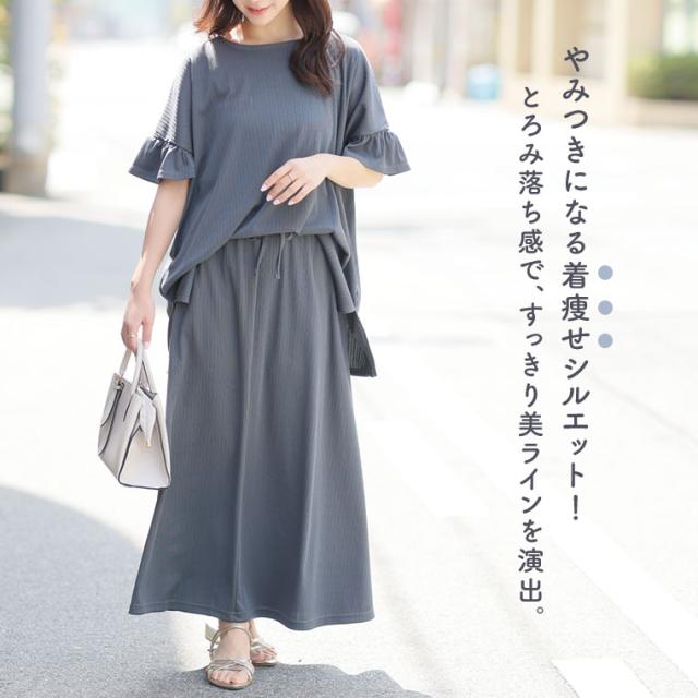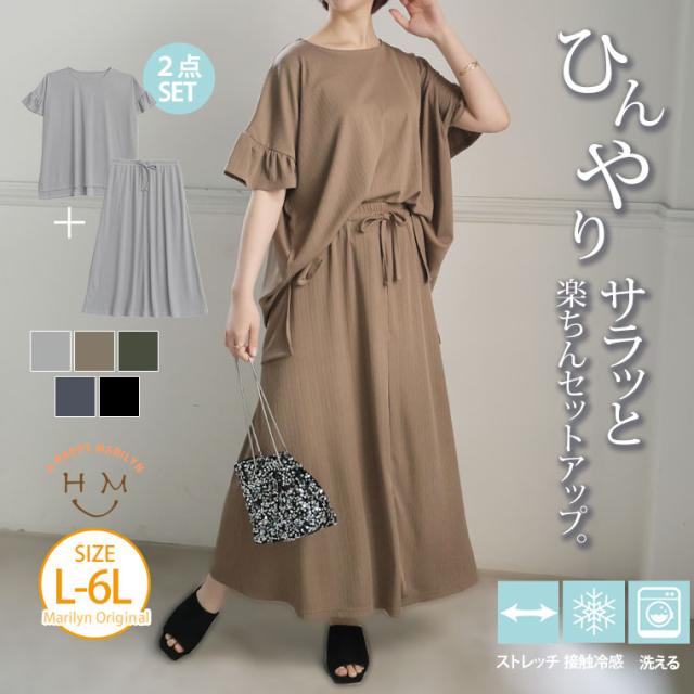 新作 大きいサイズ レディース コーデセット | さら肌リブ 着痩せ セットアップ [473391] LL 3L 4L 5L 6L