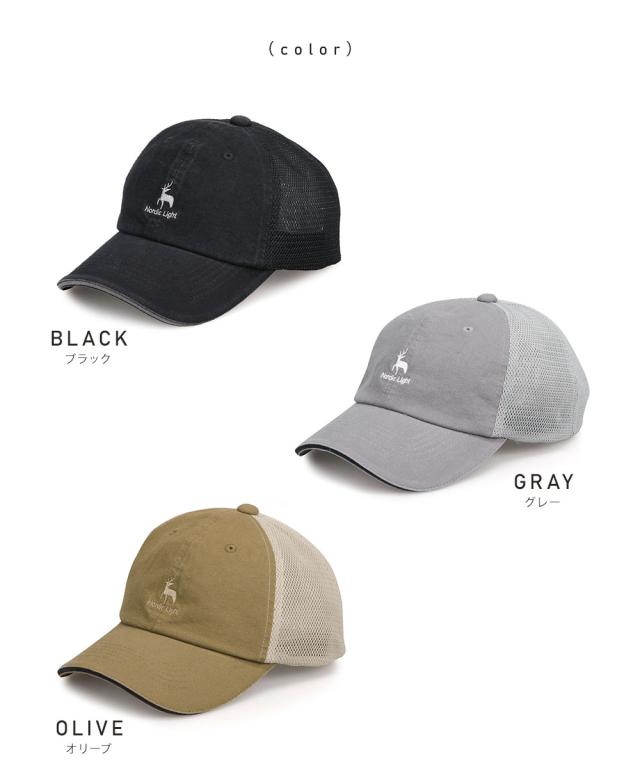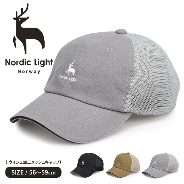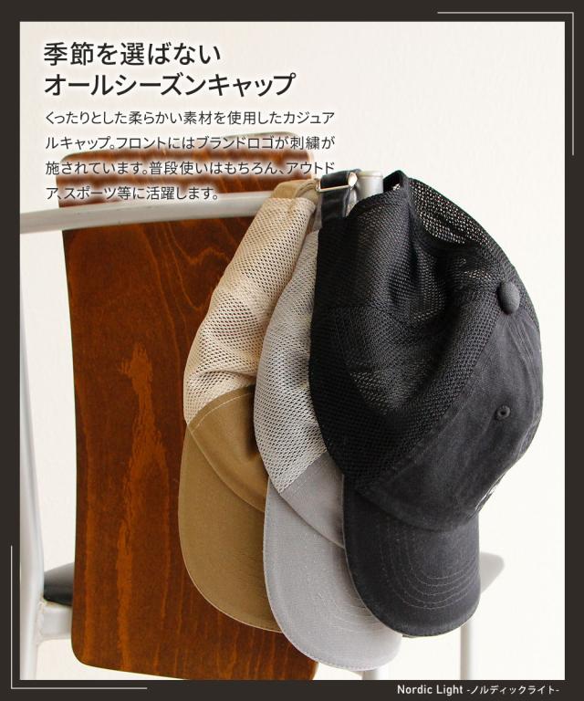 ノルディックライト 帽子 メッシュ キャップ メンズ ブランド ロゴ 刺繍 ウォッシュ加工 uv おしゃれ レディース ローキャップ ストラップバックキャップ カーブドバイザー メンズキャップ レディースキャップ 黒 ブラック グレー オリーブ 春 夏 秋 冬 Nordic Light
