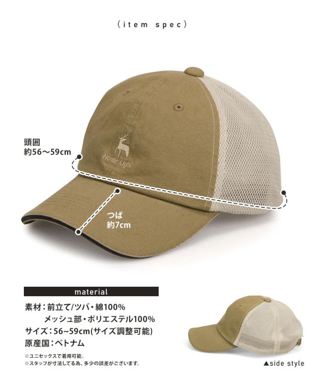 [素材]:前立て/ツバ・綿100%|メッシュ部・ポリエステル100%