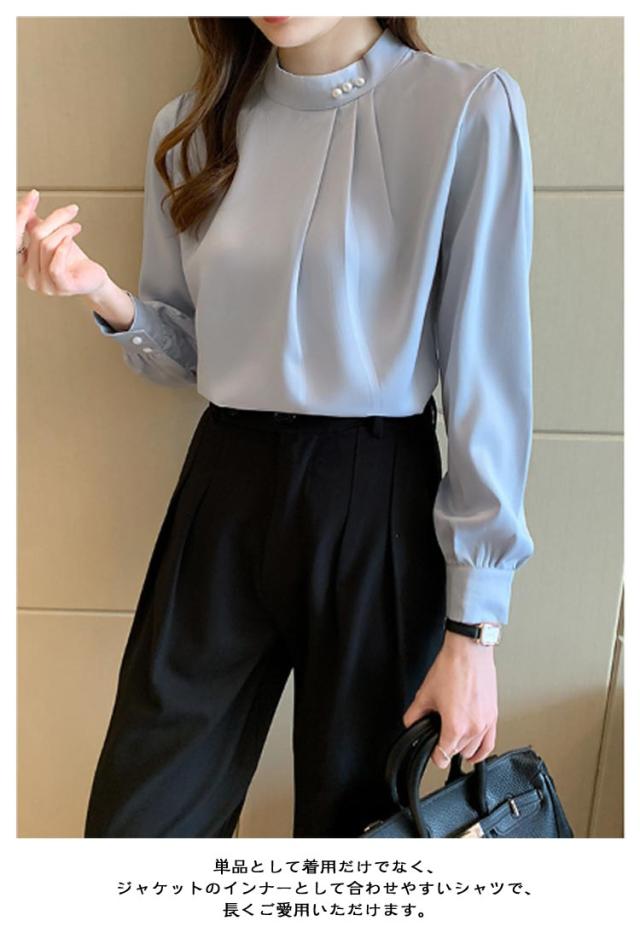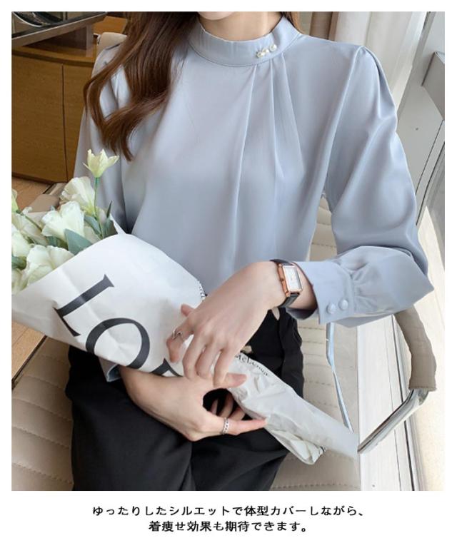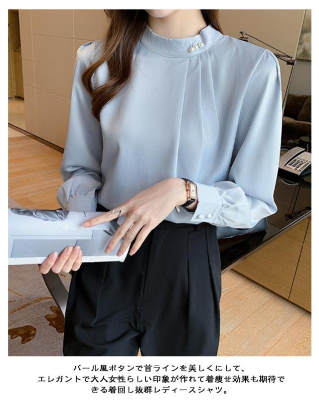 着回し ブラウス 体型カバー 立ち襟 トップス エレガント シャツ 大きめサイズ 上品 ゆったり 可愛い レディース おしゃれ 大人 ファション オフィス カジュアル フォマール ブラウス 長袖ブラウス 通勤