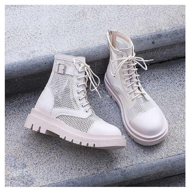 | 今季トレンド、メッシュのショートブーツです! 厚底で幅広く、履きやすく脱ぎやすい! メッシュ素材なので蒸れづらく、軽量で歩きやすい! 夏でも涼しげでブーツコーデを十分に楽しめます♪ トレンド感ある流行アイテムをぜひ! 安定感抜群で歩きやすいのも魅力♪ | |