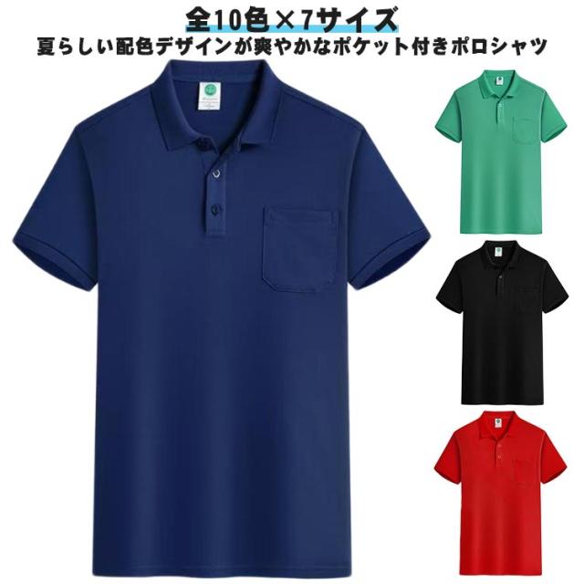レディース ポロシャツ メンズ 無地 おしゃれ ポケット付き 細身 大きいサイズ ポロシャツ 全10色 スポーツ 半袖 ビジネス ポロ POLOシャツ 夏服 スリム カジュアル 作業用 スーパーマーケット 団体 活動 男女兼用