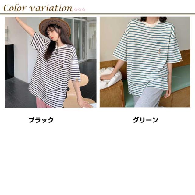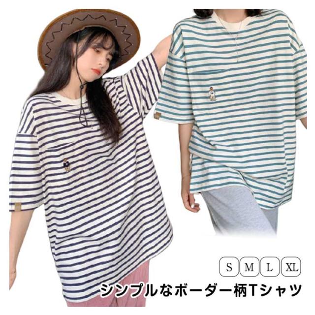 レディース トップス ボーダー 半袖 Tシャツ かわいい ボーダー柄 熊柄 半袖 ティシャツ Tシャツ 半袖 二の腕カバー 大人かわいい ゆったり カットソー 春夏