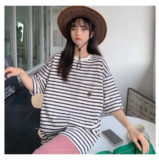 | シンプルなボーダー柄Tシャツ。 肩が落ちたゆったりとした着こなしのできるシルエットにこだわりました 身幅もゆったりしているので1枚で着てももちろん可愛いです。 ゆるっと着れるBIGサイズなのでオソロコーデやカップルコーデにもオススメです | |