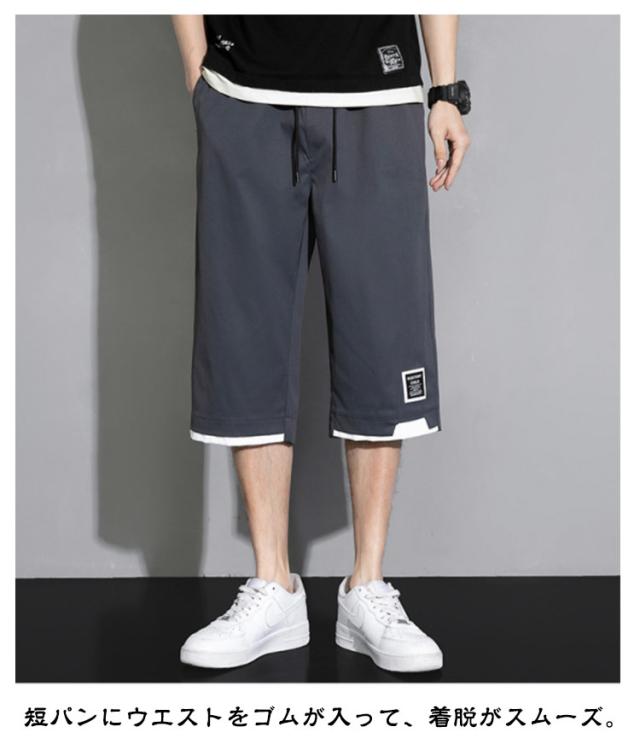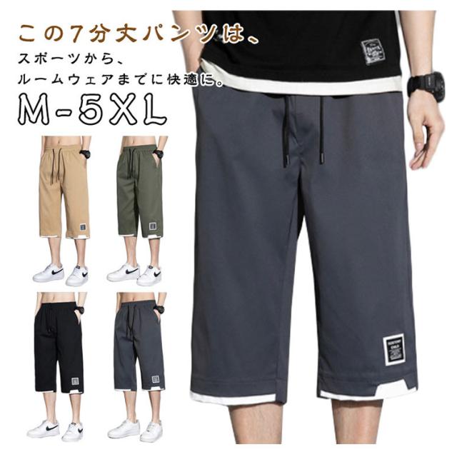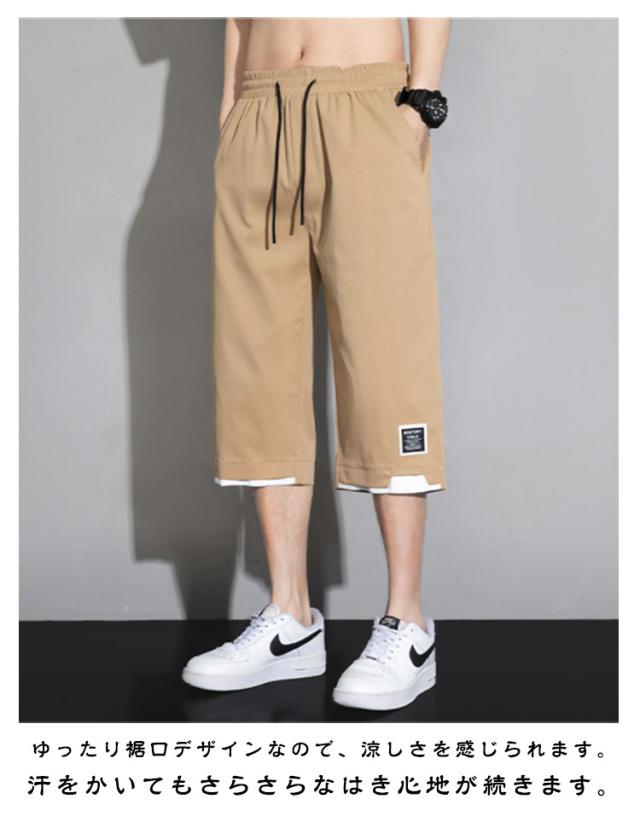 7分丈 メンズ スポーツ 半ズボン 夏 ズボン 短パン パンツ 大きいサイズ ワイドパンツ ハーフパンツ クロップドパンツ カーゴパンツ ショートパンツ ボトムス 無地 ウエストゴム ゆったり キレイめ 春