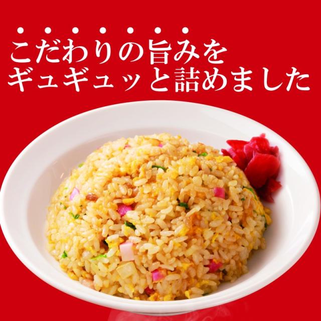 原材料:米(国産)、野菜(青ねぎ、たまねぎ)、叉焼、スクランブルエッグ、ショートニング、液卵、かまぼこ、 しょうゆ、チキンブイヨン、豚脂、香味油、砂糖、食塩、粉末しょうゆ、白こしょう、馬鈴薯でん粉、 たん白加水分解物、糖加工品/調味料(アミノ酸等)、加工でん粉、着色料(カラメル、カロチノイド、 トマトリコピン)、香料、(一部に小麦・卵・乳成分・大豆・鶏肉・豚肉・ゼラチンを含む)