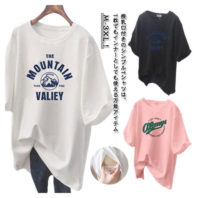 授乳服 半袖 妊婦服 tシャツ チュニック 授乳 トップス 授乳Tシャツ インナー 春夏 可愛い マタニティ ロンT ロングTシャツ 授乳ウェア クルーネック ルームウェア カットソー 産前産後兼用 妊婦 ロング丈 大きいサイズ 体型カバー 快適