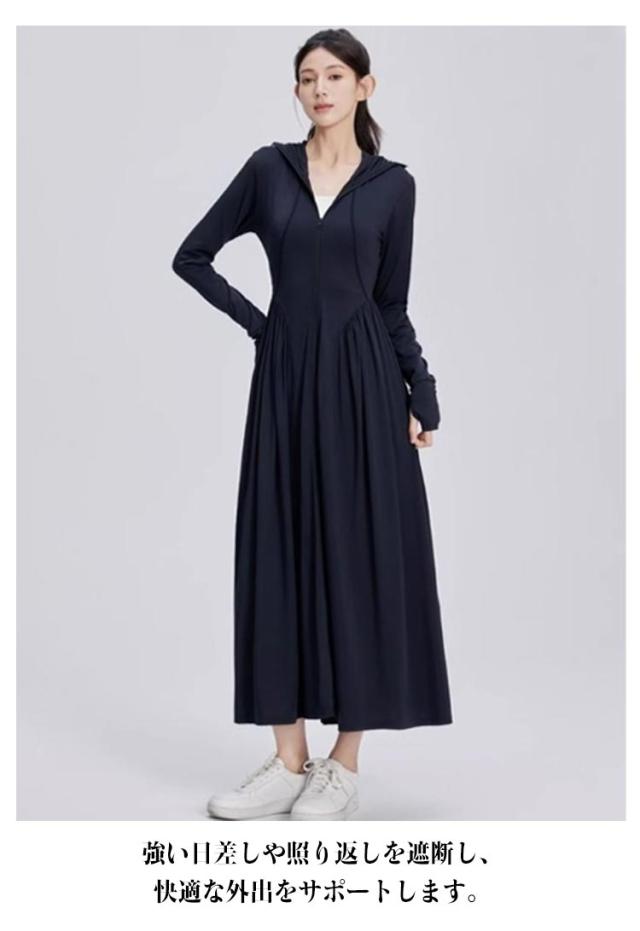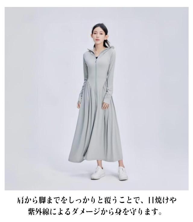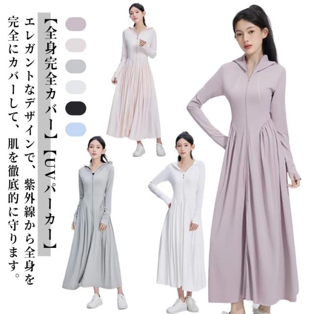 UVカット ラッシュガード 接触冷感 全身カバー レディース 軽量 アイスシルク UVパーカー 吸水速乾 体型カバー パーカー UVカット 軽量 通気性 ロング 長袖 日焼け防止 ワンピース 帽子付き アウトドア 夏服