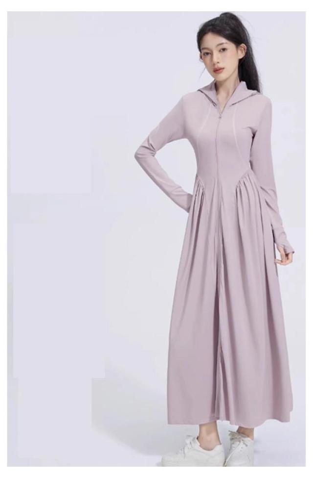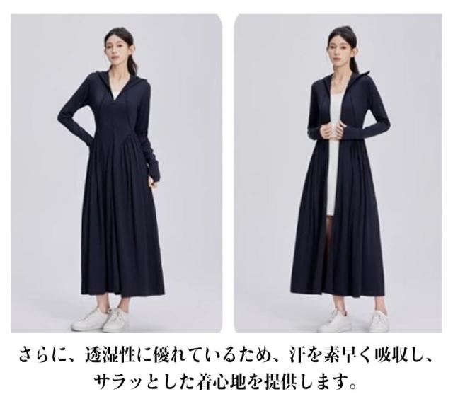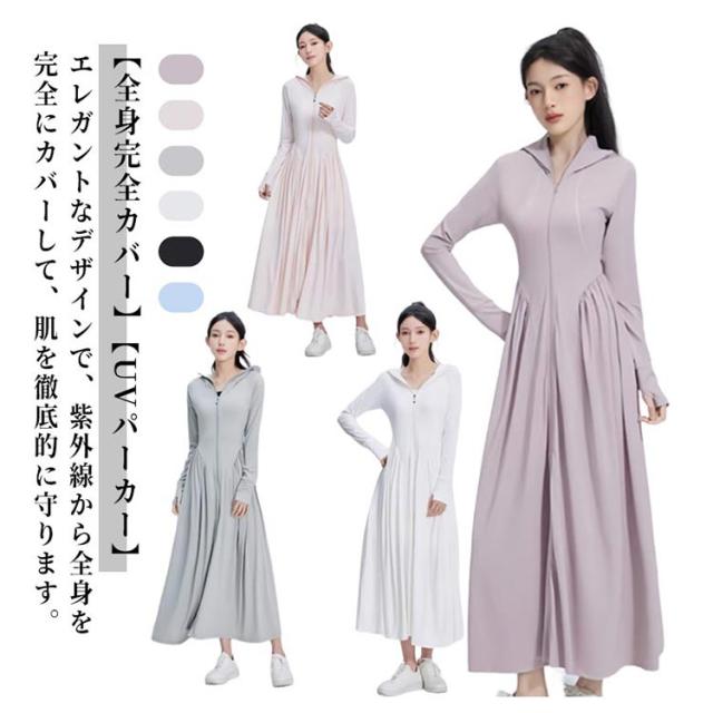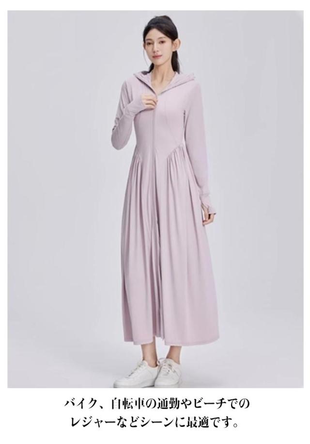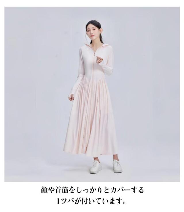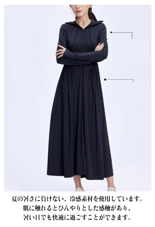 ラッシュガード レディース 接触冷感 パーカー UVカット ロング UVパーカー UVカット アイスシルク 全身カバー 吸水速乾 涼しい 軽量 通気性 体型カバー 長袖 日焼け防止 ワンピース 帽子付き アウトドア 夏服
