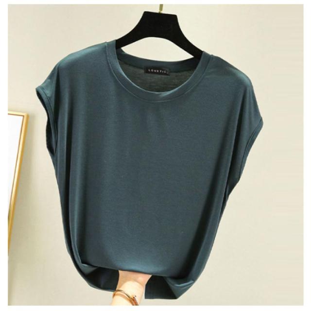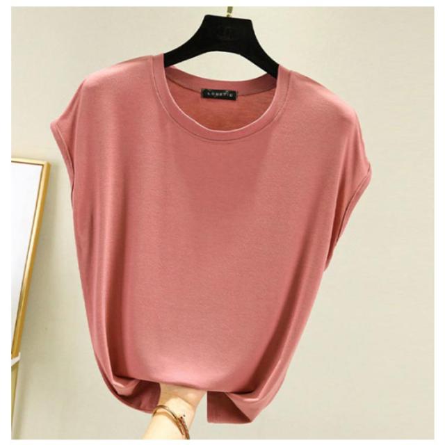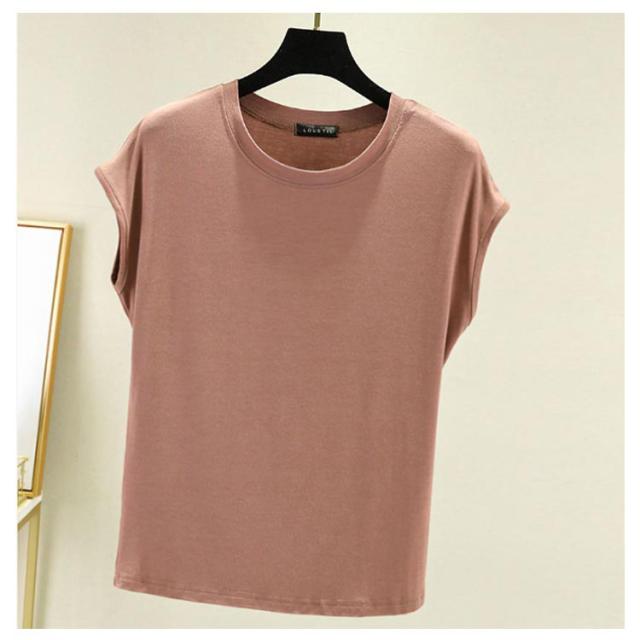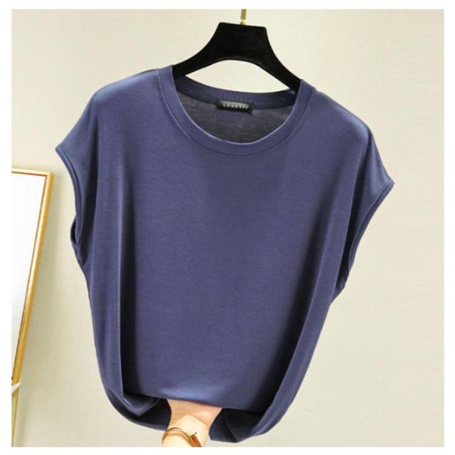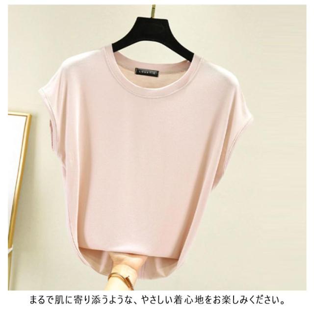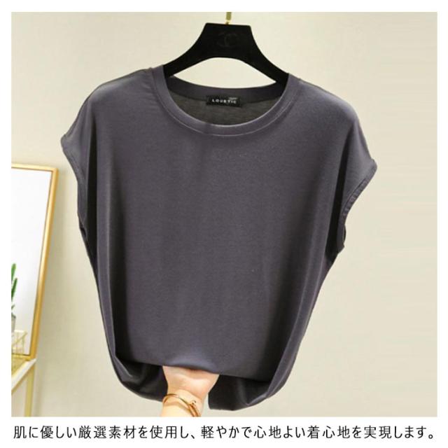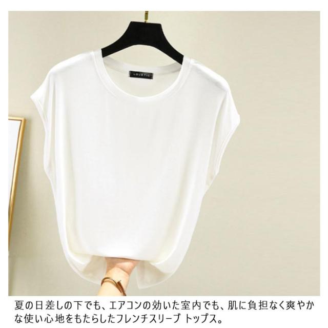 二の腕カバー 半袖 フレンチスリーブ 涼しい カジュアル 着痩せ 無地 M-2XL 夏 レディース 着回し 春 Tシャツ Uネック ラウンドネック トップス ルームウェア シンプル 部屋着 カットソー 着痩せ 柔らか 通気 M-2XL カジュアル