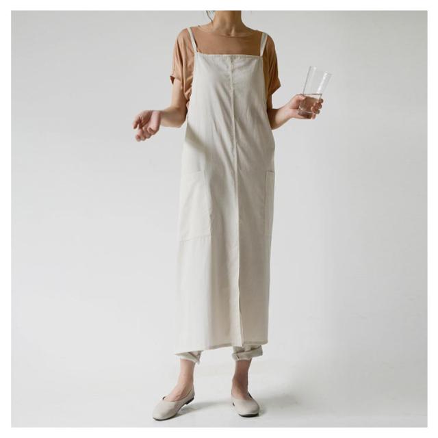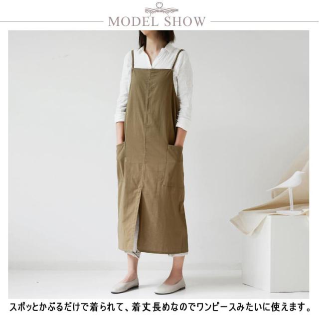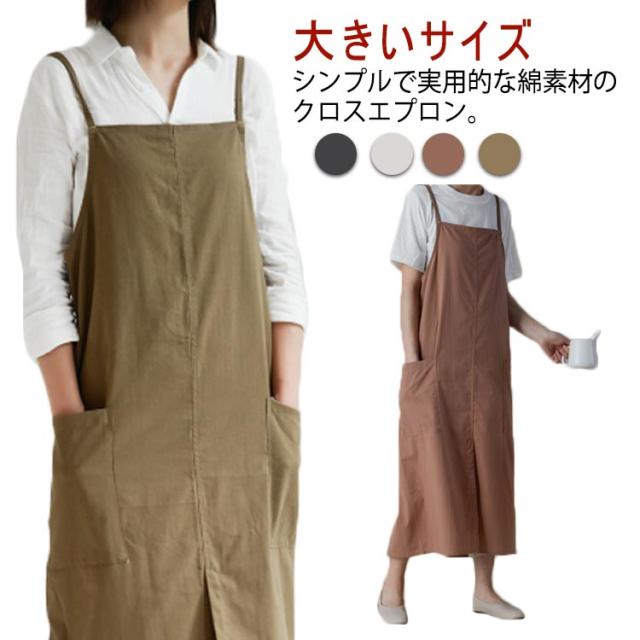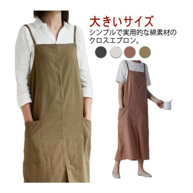 エプロン おしゃれ レディース ワンピースエプロン 大きいサイズ ゆったり ロングエプロン ポケットあり チュニックエプロン プレゼント シンプル カフェエプロン 韓国 実用的 保育士 花屋 ナチュラル 作業用 おしゃれ