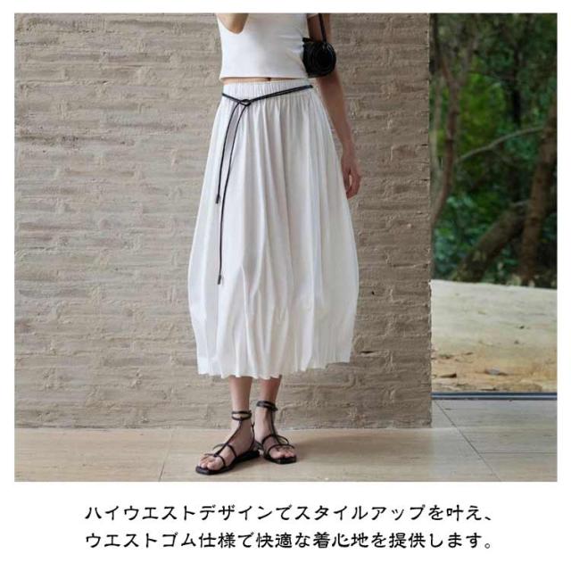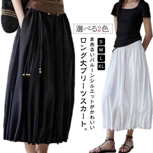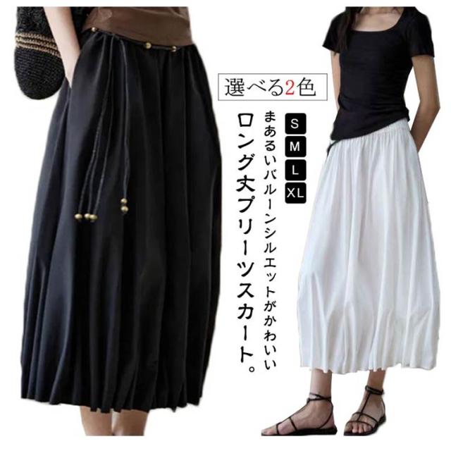 レディース ロング 大きいサイズ バルーンスカート プリーツ 秋 春 バルーン ハイウエスト ロングスカート バルーンスカート ボトムス ウエストゴム スカート マキシ丈 バルーンシルエット ボトムス 涼しい 30代 40代 50代 ブラック