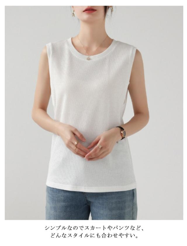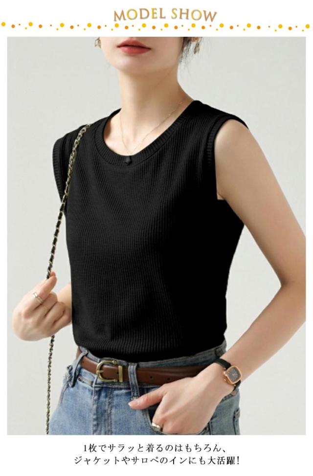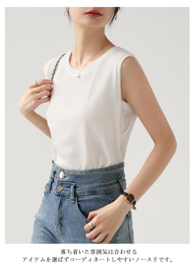| ストレッチ性に優れた生地で1日中快適な着心地のノースリーブトップス。 1枚でサラッと着るのはもちろん、ジャケットやサロペのインにも大活躍! シンプルなのでスカートやパンツなど、どんなスタイルにも合わせやすい。 ルームウエアやワンマイルウエアとしてリラックスタイムに最適です。 落ち着いた雰囲気は合わせるアイテムを選ばずコーディネートしやすいノースリです。 | |