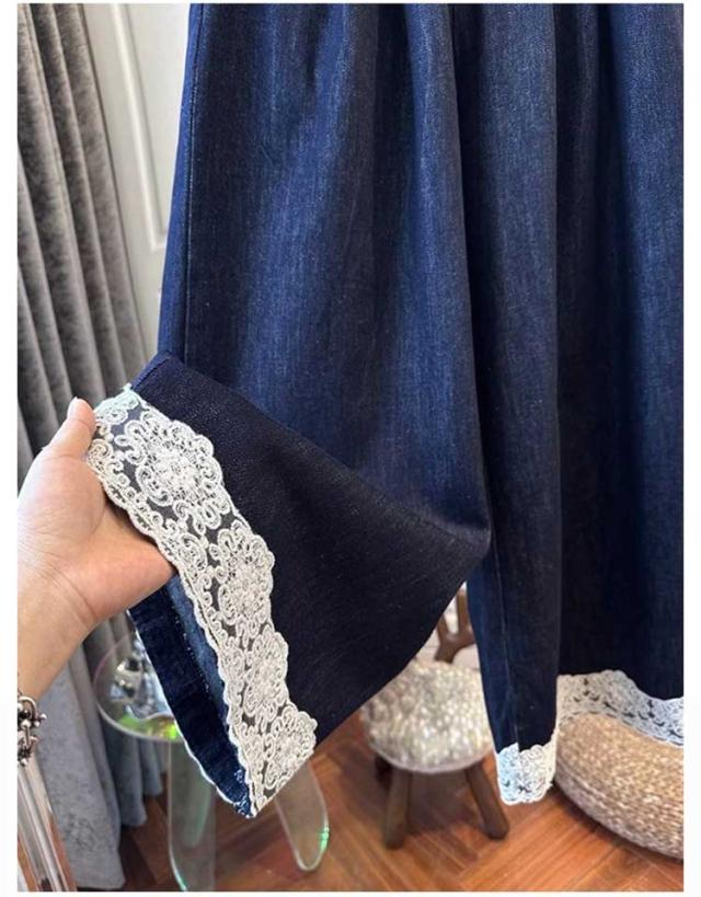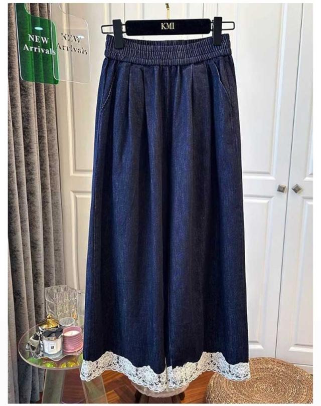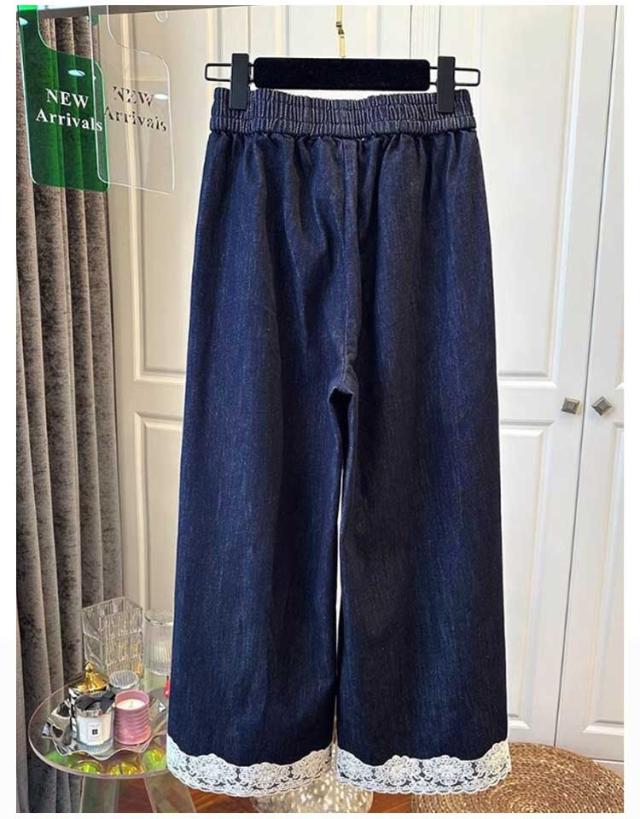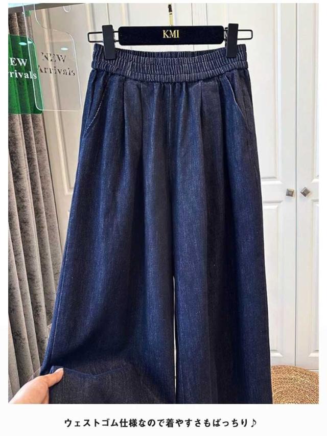 デニムパンツ ウェストゴム デニムパンツ ウェストゴム レディース イージーパンツ 裾レース カジュアル ワイドパンツ おしゃれ きれいめ 春
