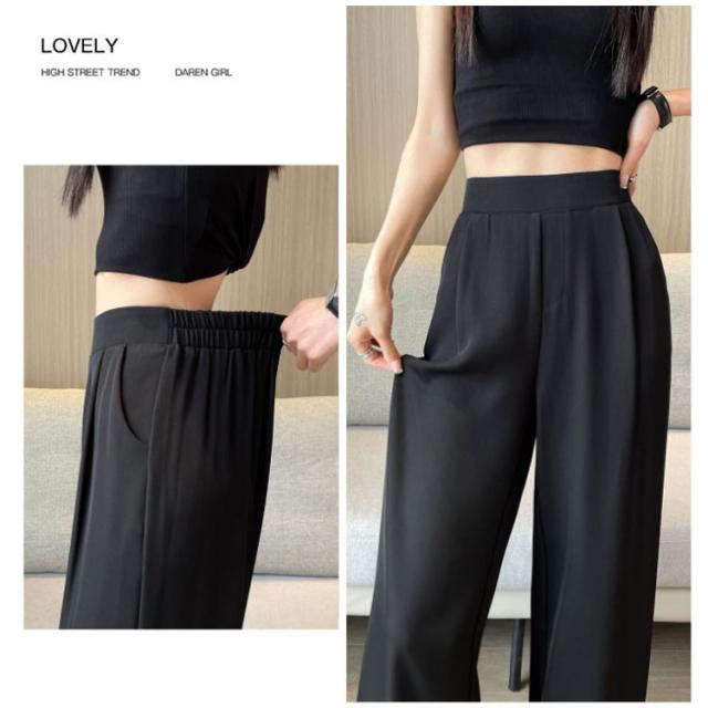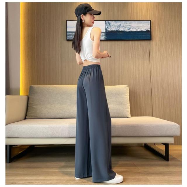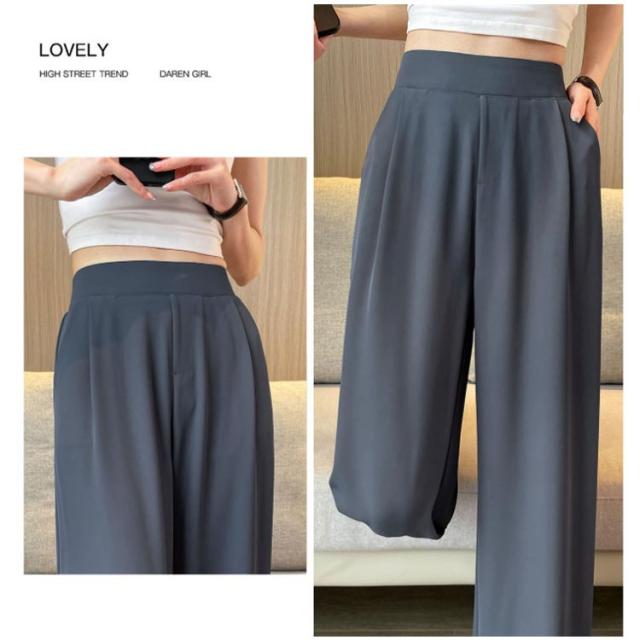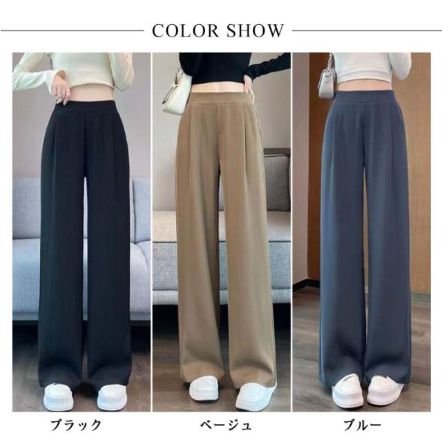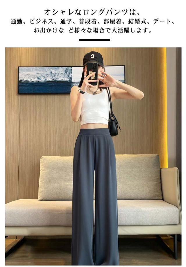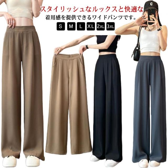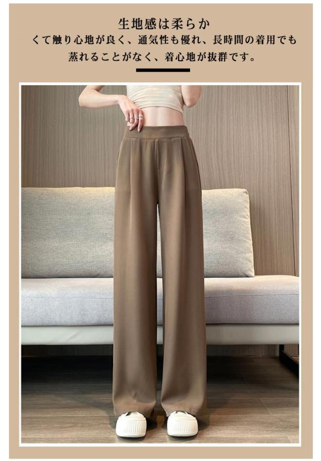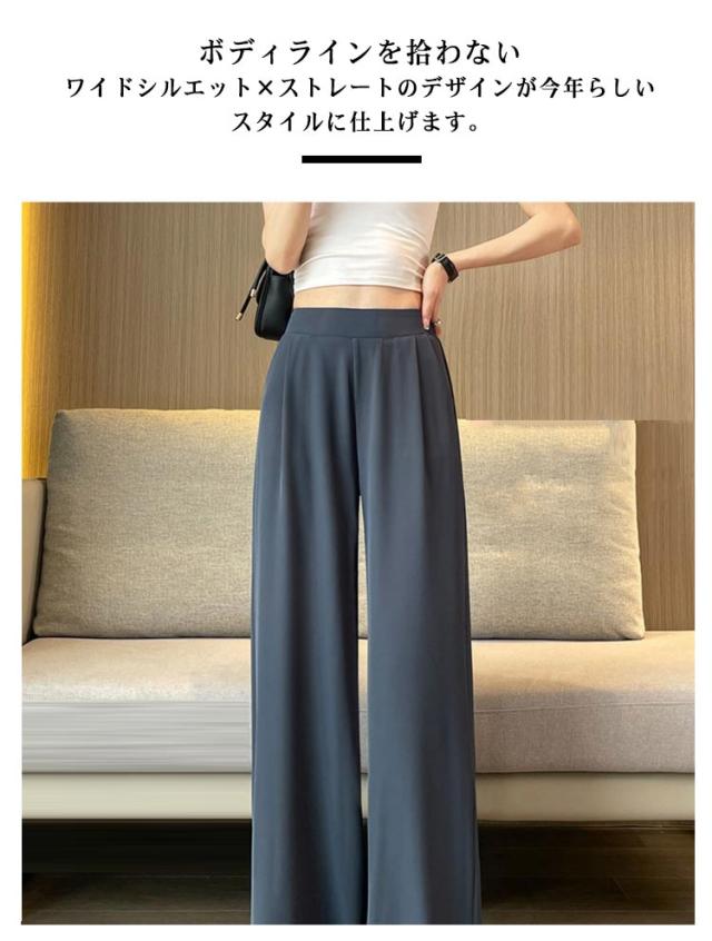 薄手 ストレートパンツ ボトムス ワイドパンツ ズボン ワイドパンツ リラックス ウエストゴム スラックス レディース ロングパンツ お洒落 ゆったり カジュアル 体型カバー 春夏 大きいサイズ