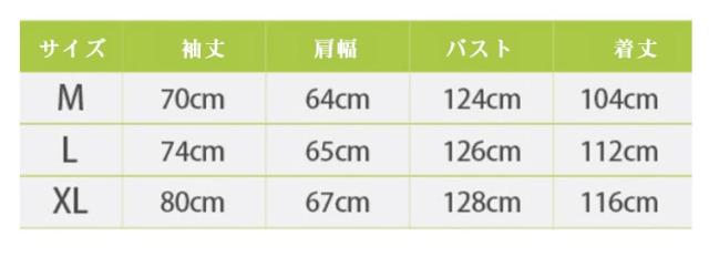 | サイズについての説明 | サイズ 袖丈 肩幅 バスト 着丈 ※サイズ表の実寸法は商品によって1-3cm程度の誤差がある場合がございます。 |