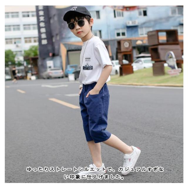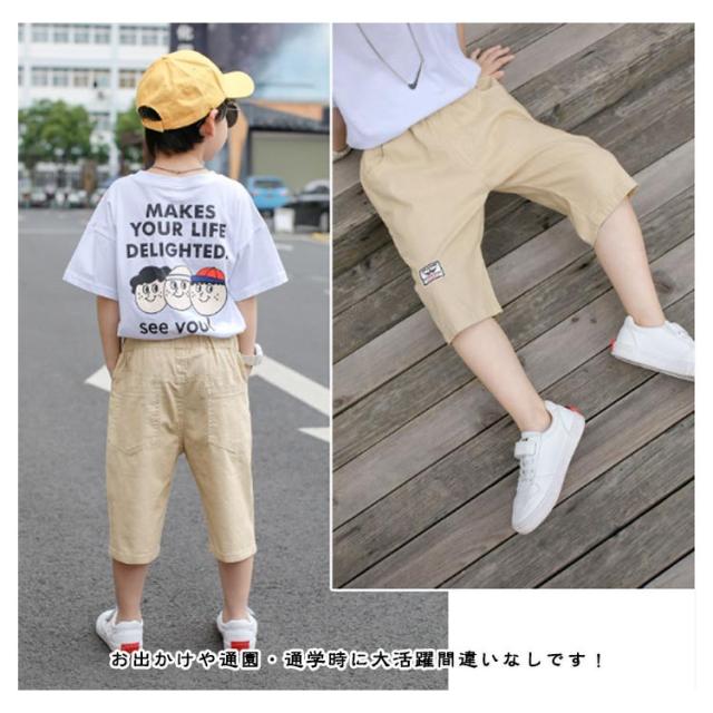 綿混 ウエストゴム 小学生 七分丈パンツ ショートパンツ クロップドパンツ ハーフパンツ カジュアルパンツ 薄手 無地 ゆったり 男の子 通学 ボトムス キッズ ジュニア クロップド 中学生 膝下 子供服 ズボン 夏 シンプル パンツ お出かけ 110-170