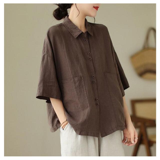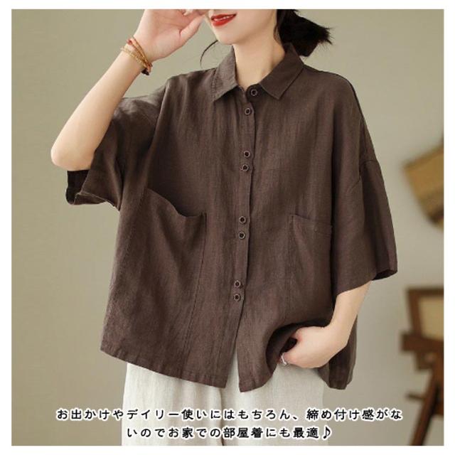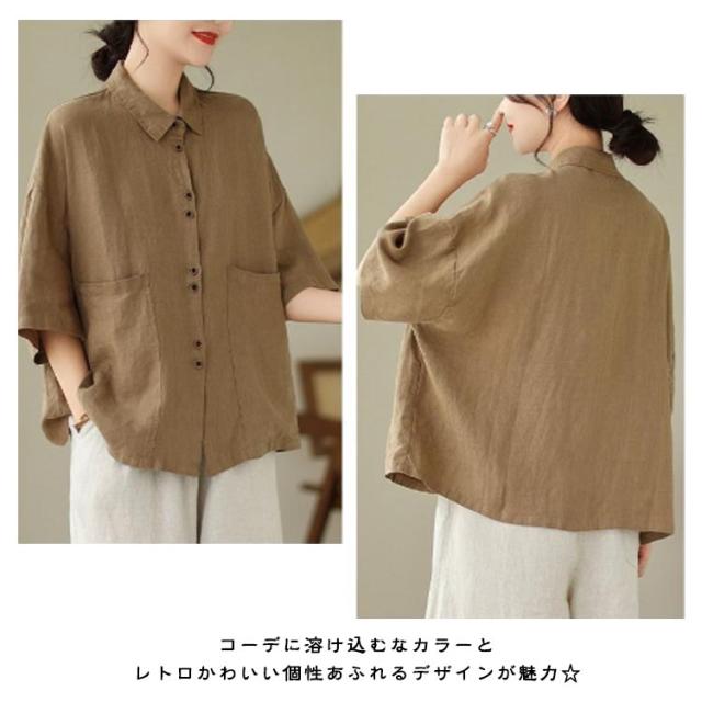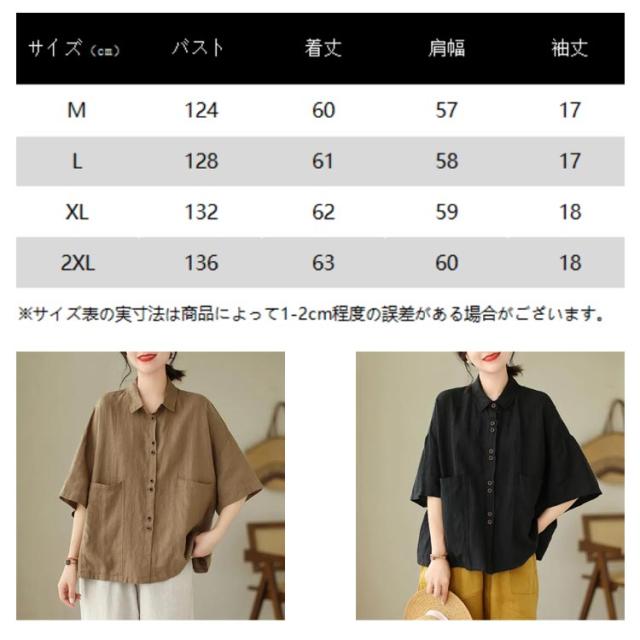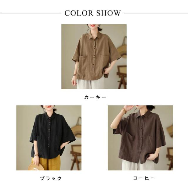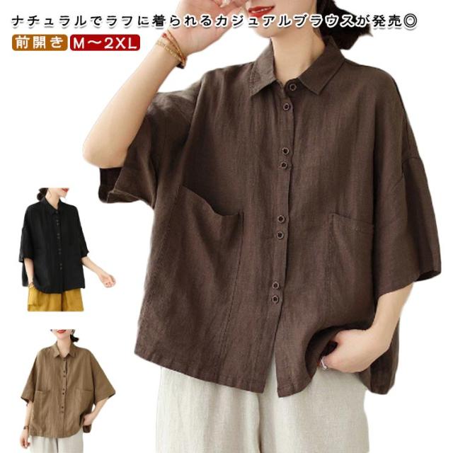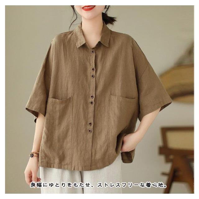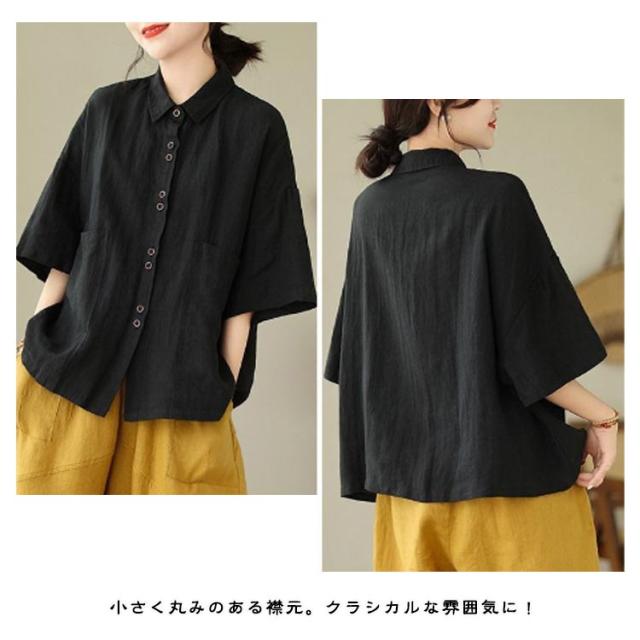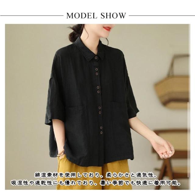 綿 五分袖ブラウス 前開き レディース シャツブラウス ナチュラル 半袖 薄手 通勤 シャツ トップス おしゃれ 無地 シンプル コットン 通気性 柔らか オフィス 通学 レギュラカラー カジュアル 大きいサイズ ゆったり 体型カバー カジュアル 春夏 大人女性