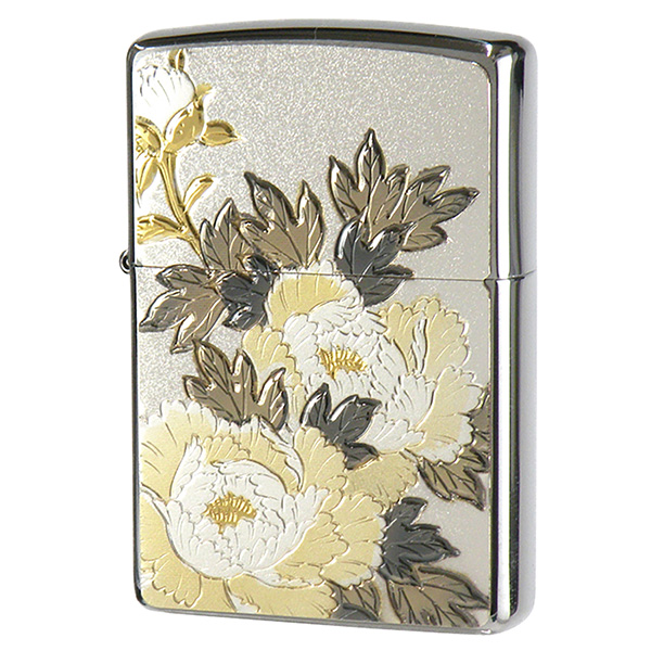 ZIPPO 電鋳板 牡丹 ぼたん ボタン 電気メッキ技法 日本伝統意匠 彫金 装飾メッキ ジッポー ライター ジッポ Zippo オイルライター zippo ライター 和柄 和風 縁起物 正規品
